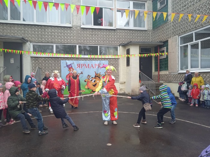Нашу ярмарку посетили сказочные герои: Царь Горох, царевна Несмеяна, Скоморох, весёлый Медведь. Всё они пели,танцевали, соревновались вместе с детьми и их родителями.